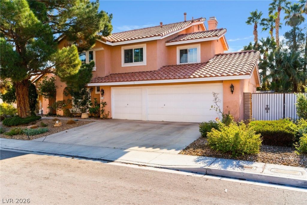 Beautifully maintained original owner home with 4 bed/3 bath on a spacious 10,890 sq ft CORNER LOT. OWNED SOLAR keeps average NV Energy bills at just $120/mo, complemented BY NEW WINDOWS (6 yrs) and NEW HVAC (3 yrs) FOR YEAR ROUND EFFICIENCY. Inside, enjoy plantation shutters, a downstairs ensuite, and a dual-workstation office upstairs. The primary suite impresses with his-and-hers walk-in closets, a freestanding shower, clawfoot tub, and gas fireplace. A second fireplace warms the family room below. Formal living and dining areas feature soaring vaulted ceilings. The kitchen offers granite countertops, all appliances, a KINETICO WATER SOFTENER, and reverse osmosis filtration. Garage extras include a refrigerator and 220V EV charger. Outside, a covered patio, fountain, mature palms, Jacuzzi, storage shed, and horseshoe pit create a true backyard retreat?with room to add a pool. Pride of ownership shines throughout.
